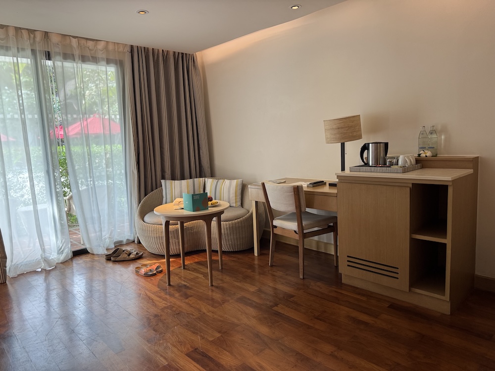 Dieser Bereich (einer von ingesamt drei) liegt zwar nicht am Strand, ist aber wie ein authentisches Thaidorf angelegt und überzeugt mit einem schön angelegten Garten samt großzügigem Pool. Der Beachwing liegt wie der Name vermuten lässt am Strand, ebenfalls mit Pool und zieht damit hauptsächlich Familien an. Der Garden Wing befindet sich wie der Thai Village Bereich über der Straße noch weiter nach hinten gesetzt. Der Pool dort ist neu und verfügt über ein paar Wasserspielvorrichtungen für Kleinkinder und passt perfekt für Familien mit kleineren Kindern. Die Zimmer sind allesamt klassisch, international im Style: unaufgeregt, aber solide und definitiv zum Wohlfühlen. Apropos Lage: der Flughafen ist nur 20 Autominuten entfernt.