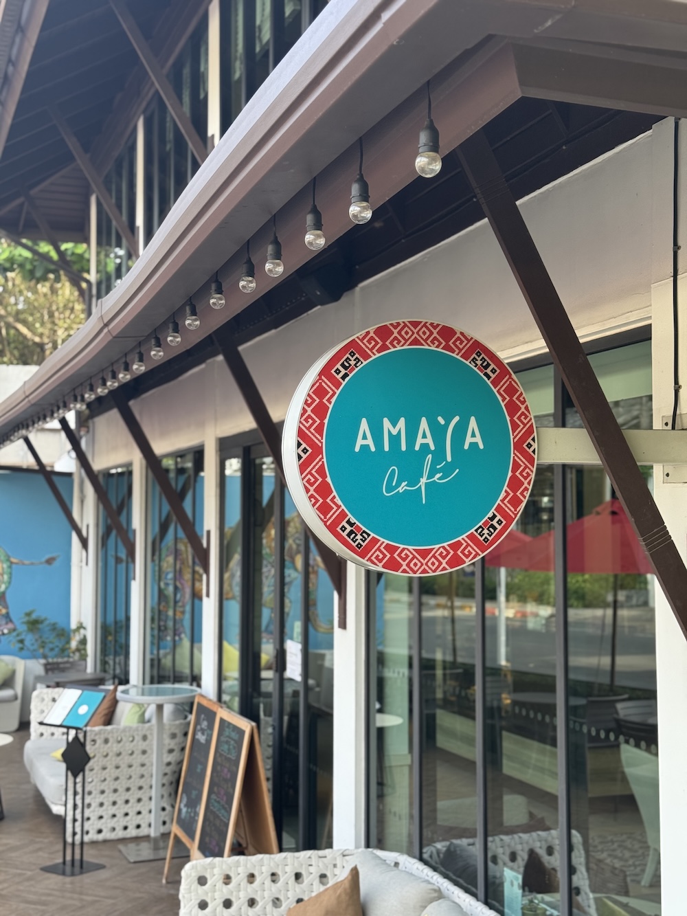 Die Amaya Food Gallery ist der Dreh- und Angelpunkt in Sachen Kulinarik im Amari Koh Samui. Das Frühstücksbuffet ist von 6:30 Uhr bis 10:30 Uhr zugänglich und bietet eine unglaubliche Vielfalt an Optionen. Unterteilt in verschiedene Corner und Ebenen finden sich hier asiatische, europäische und indische Frühstücksgerichte, oft mit Strandblick. An außgewählten Abenden gibt es spezielle Dinnermöglichkeiten wie das Seafood BBQ am Strand oder die Surf & Turf Night. Ansonsten wählt man – wie übrigens den ganzen Tag über – aus der umfangreichen A la Carte Karte der Aqua Eatery & Bar. Von Burger und Pizza über indische und thailändische Klassiker kann man hier sehr abwechslungsreich essen. Sehr zu empfehlen sind die indischen Gerichte – die sind allesamt perfekt! Unter der Herrschaft von der quirligen Penn läuft das Service übrigens wie am Schnürchen inkl. persönlicher Empfehlungen. Coffeelover und Naschkatzen kommen im Amaya Café voll auf ihre Kosten (und Kalorien). Mein Gott diese Timbering Croissants… Tipp: das Afternoon Tea Package buchen mit pikanten und süßen Kreationen, toll in Szene gesetzt.