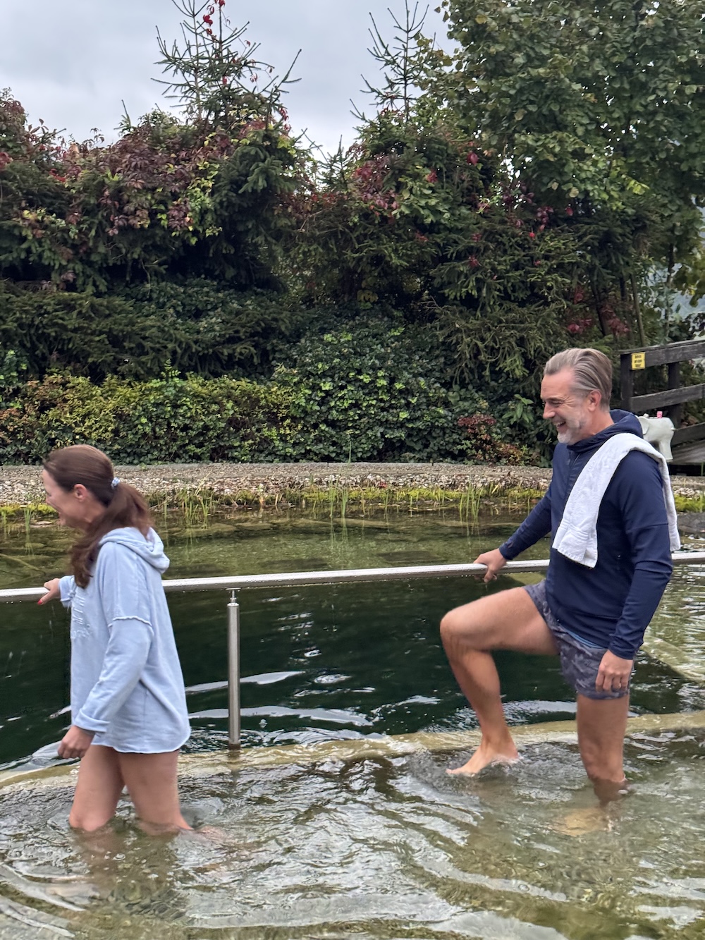 - Um 7:30 Uhr geht es los mit Wassertreten, sprich Kneipen. Man kann das gemeinsam mit den anderen Fastern machen, es ist aber auch kein Problem, wenn man dies alleine oder mit seinem Partner machen will.