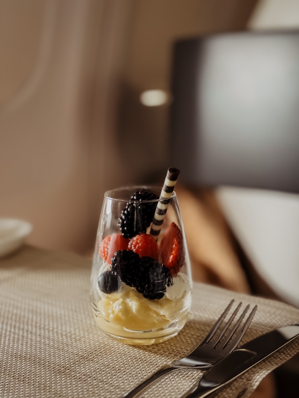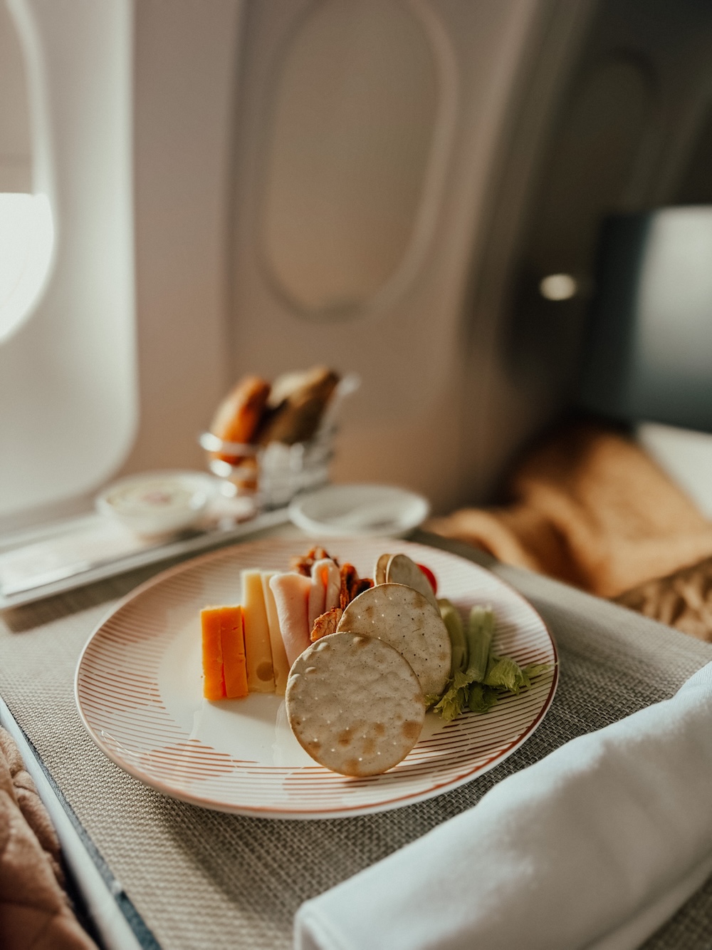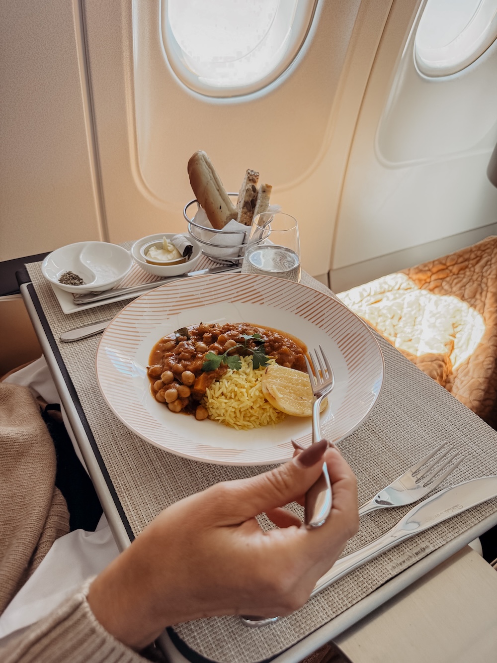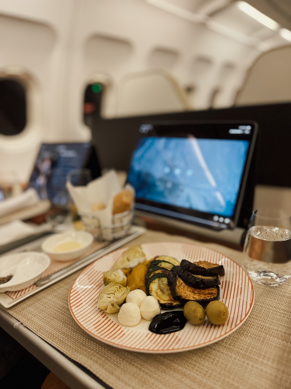 - Kleine Geste, großer Effekt: Der Tisch wird richtig eingedeckt. Salz, Pfeffer, Brotkorb. Man fühlt sich nicht wie in einem Flugzeug – eher wie in einem Restaurant.
